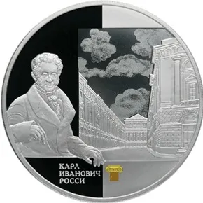 A memorable silver coin «Architectural ensemble of Architect Rossi Street, St.-Petersburg (architect C.I.Rossi)» was issued the day before by the Bank of Russia.