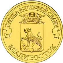 Coins from base metal of yellow colour of 10 rubles denomination dedicated to Vladivostok replenished the series "Cities of Military Glory". It is issued into circulation in 10 million items, the press service of the Bank of Russia informs.
