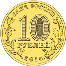 There is a relief image of Vladivostok emblem on the reverse side of the coin. Inscriptions are made along the rim: at the top - "Cities of Military Glory" and at the bottom - "Vladivostok".