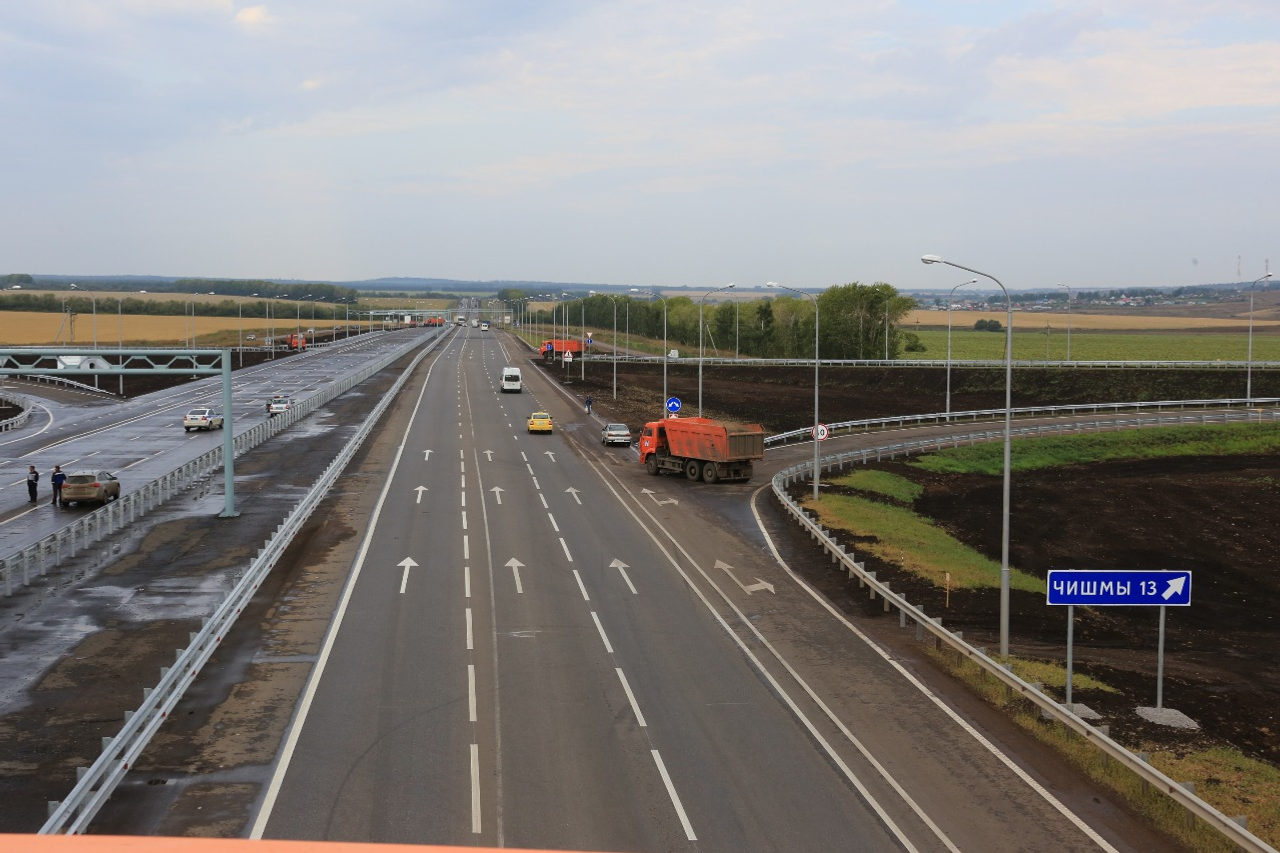 Two-level Chishmy interchange near Ufa on the 1428 km of M-5 federal highway was commissioned on August 29. The road infrastructure item was inspected by the Russian Presidential Envoy to the Volga Federal District Mikhail Babich, the Transport Minister RF Maxim Sokolov and the head of Bashkortostan Rustem Khamitov.