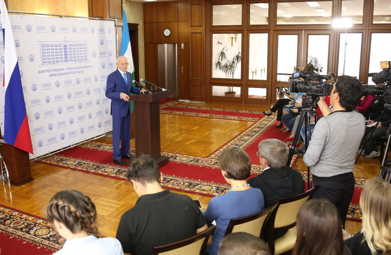 UFA, 15 September 2014. /Bashinform News Agency, Galiya Nabieva/. Rustem Khamitov congratulated the governors who won the elections of senior officials in the Russian regions on the single voting day. As the head of the republic said "These are 3-5 people with whom we have good personal contacts".