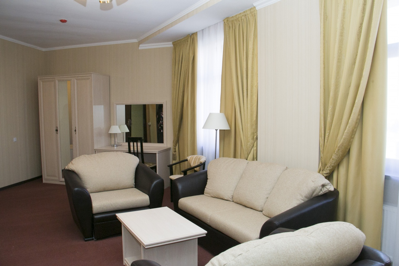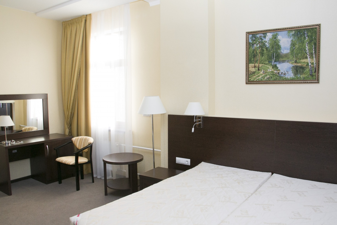 The total area of the hotel is 8.28 thousand square metres. 108 rooms are located on ten floors. Among them, there are two presidential suites, each with five rooms. Cost of living in this suite will be 52 thousand rubles a day. A restaurant with 50 seats and a conference hall for up to 25 guests are operating. Visitors can also take advantage of two parking lots: underground parking for 80 cars and ground level parking for 20 cars.