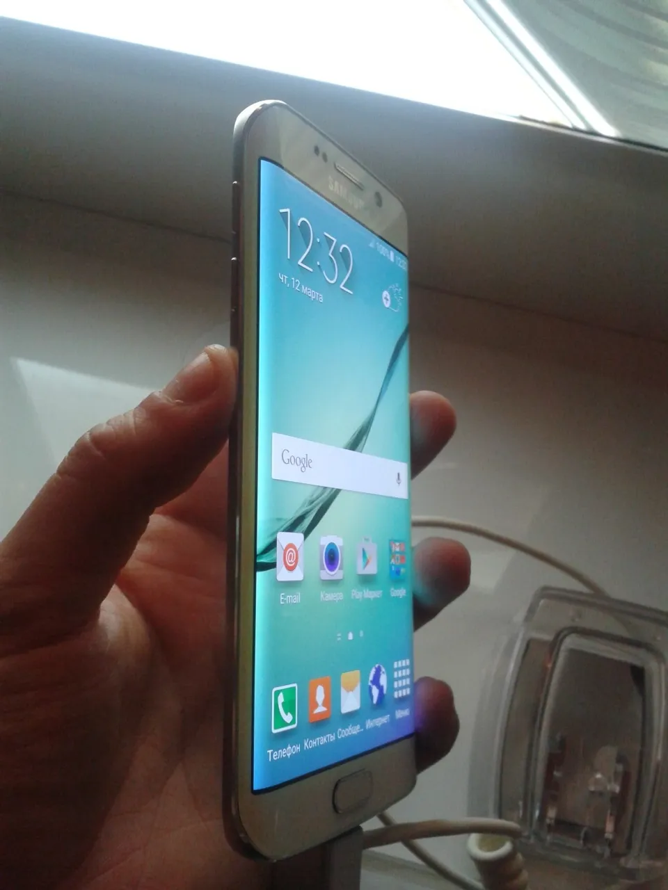 UFA, 12 March 2015. /Bashinform News Agency, Arthur Basyrov/. The estimated price of Samsung S6 in Russia will start from 50 thousand rubles, it relates to the version with built-in memory of 32 GB. Another novelty, Samsung S6 Edge with a curved screen will be 10 percent more expensive. Sales in Russia are scheduled for April 16. This was reported by the director of "Samsung Mobile Russia" Arkady Graf at the presentation of the new phones in Moscow on March 12.