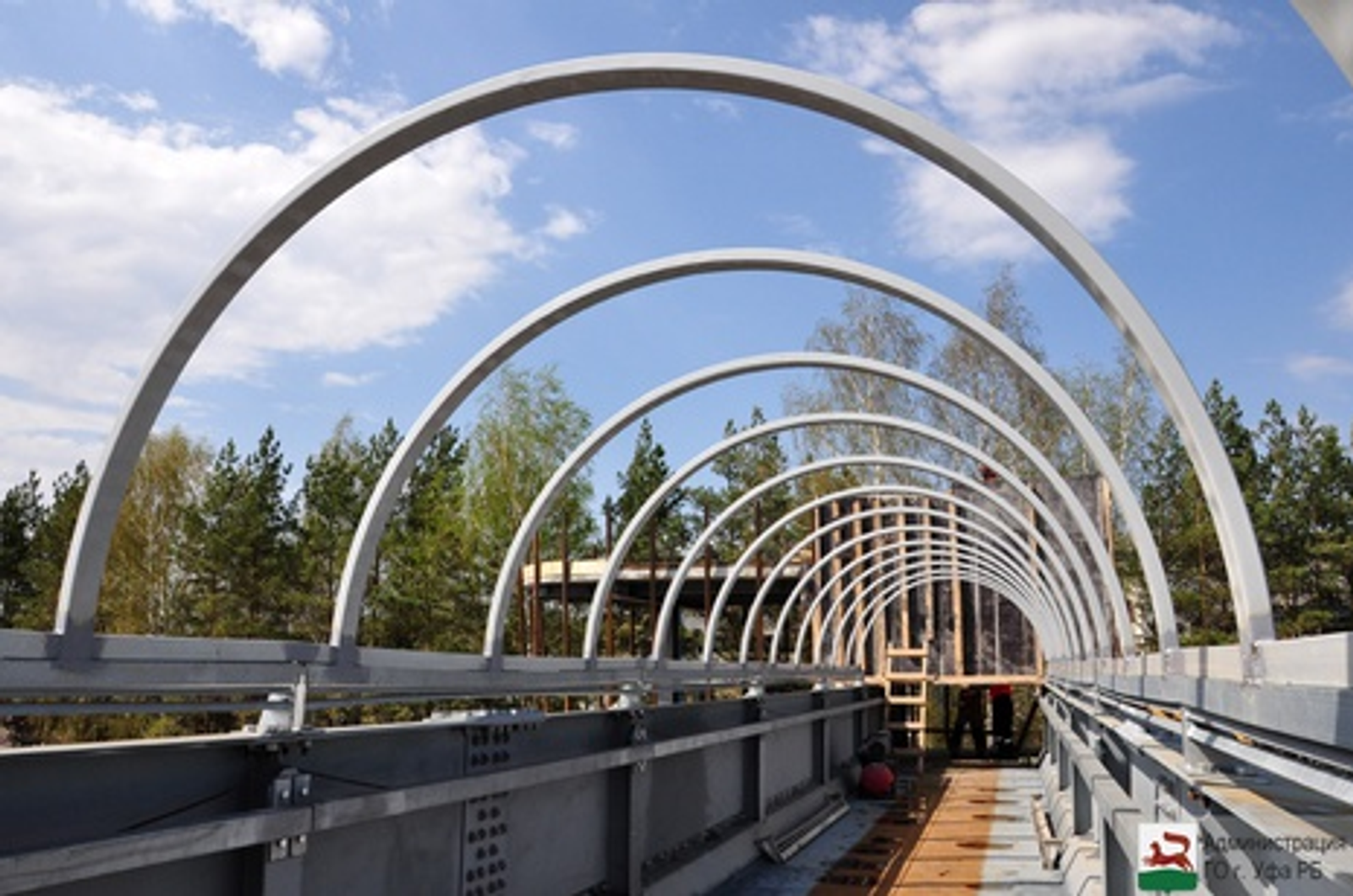 UFA, 5 May 2015. /Bashinform News Agency, Elvira Latypova/. The construction of four footbridges on the route Ufa - Airport is nearing completion. As the press service of the city administration informs, the construction works are scheduled for completion by the middle of May, followed by landscaping.