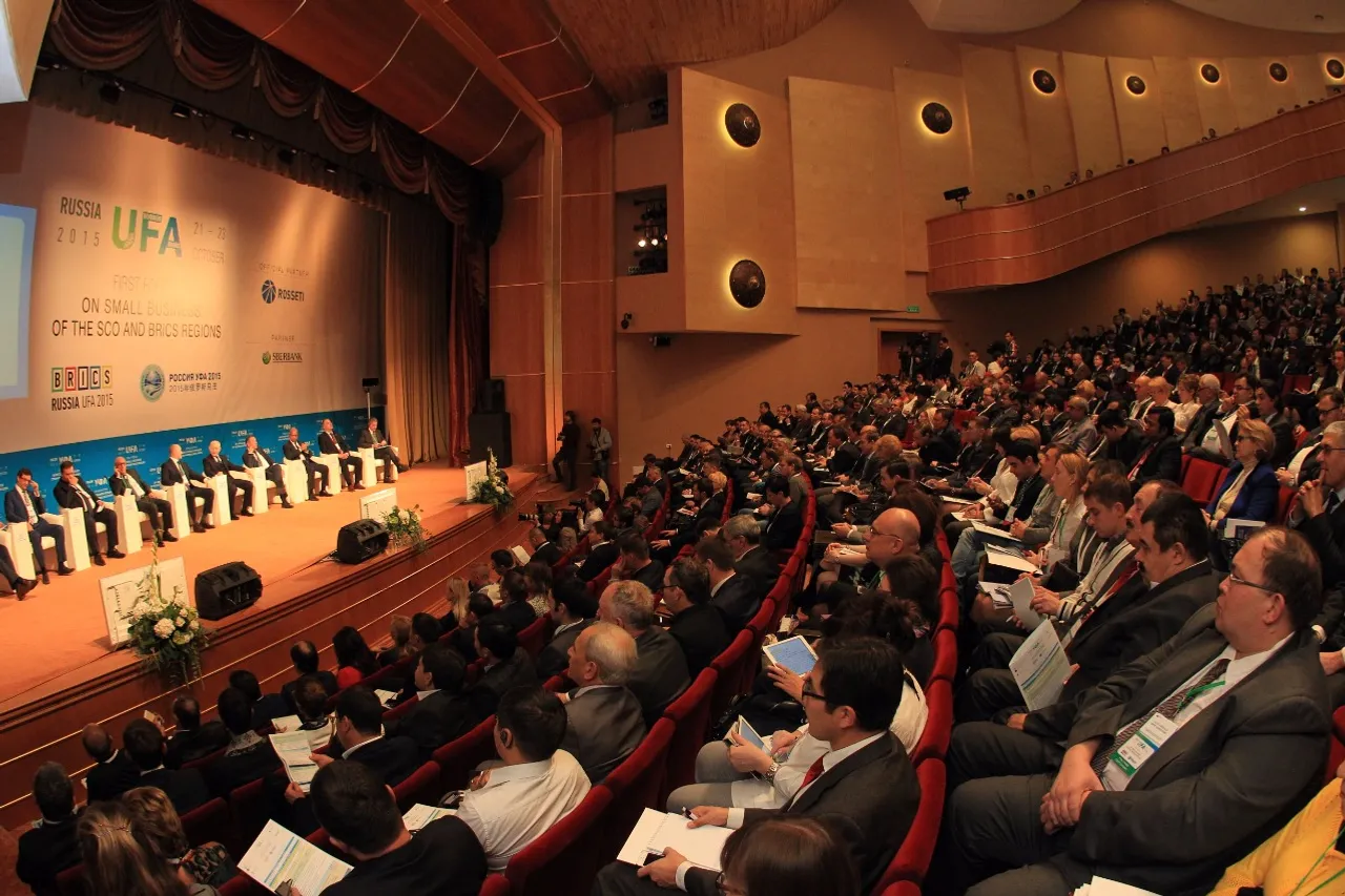 UFA, 22 October 2015. /Bashinform News Agency, Arthur Basyrov/. The Head of Bashkortostan Rustem Khamitov welcomed the participants of the First Forum of Small Business of the SCO and BRICS member-states. The forum takes place at this moment in Ufa. As Rustem Khamitov noted, the small and medium business relationship is able to increase greatly the interaction between countries.