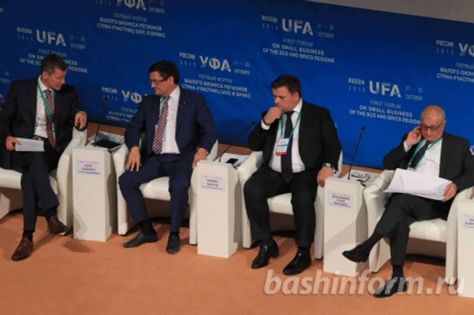 UFA, 22 October 2015. /Bashinform News Agency, Rozaliya Valeeva/. Issues of removing customs and other barriers at the trade between businessmen of the BRICS member-states will be discussed by the leaders of these countries. This was announced by the Director General of the Agency for Strategic Initiatives on Promoting New Projects Andrey Nikitin during a plenary session of the First R2R Forum of small business of the SCO and BRICS countries, which takes place in Ufa.