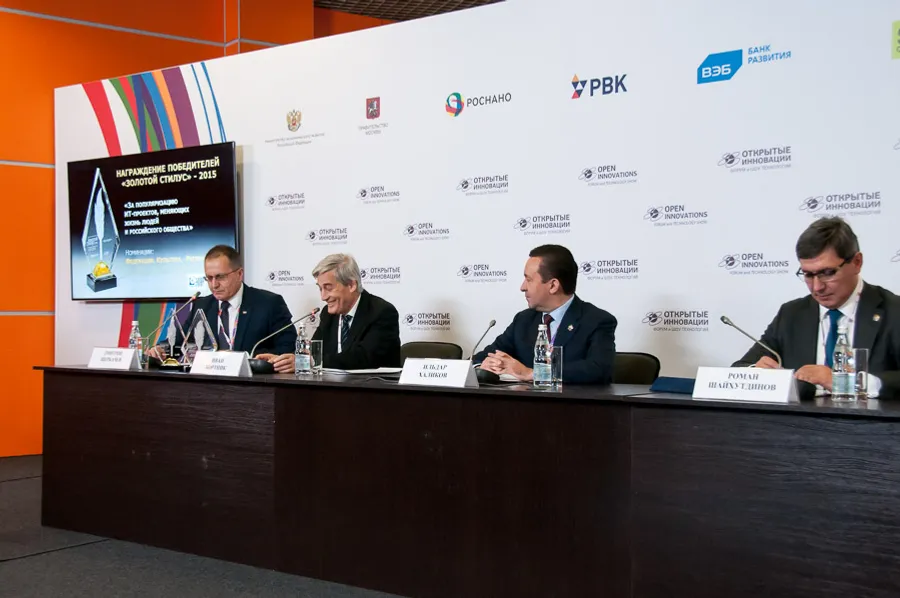 UFA, 30 October 2015. /Bashinform News Agency, Alim Faizov/. In Moscow, at the "Open Innovations" forum an awarding ceremony of the third annual journalistic award for promoting IT projects that affect the lives of people and the Russian society - the "Golden Stylus 2015" took place. The award founders are Association of Innovative Regions of Russia (AIRR) and ELAR Corporation.