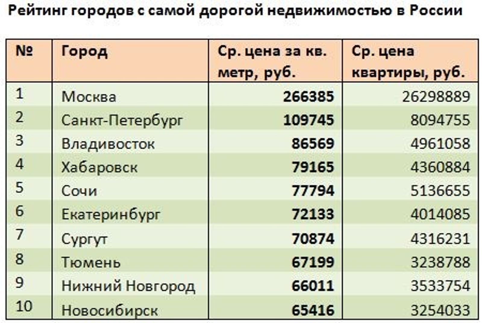 Moscow and St. Petersburg are in the lead of the most expensive housing. Experts explain a huge gap between the prices of apartments in Moscow from other regions by a large share of luxury real estate in the database of the website. Without including it a square meter cost about 195.7 thousand rubles in Moscow in early December. The average price of offered apartments in the capital amounted to almost 13.2 million rubles.