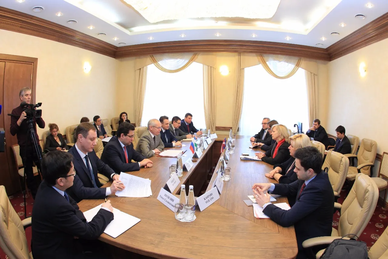 UFA, 15 December 2015. /Bashinform News Agency, Elmira Sabirova/. Rustem Mardanov met with delegation headed by Latvian Ambassador Astra Kurme at Government RB