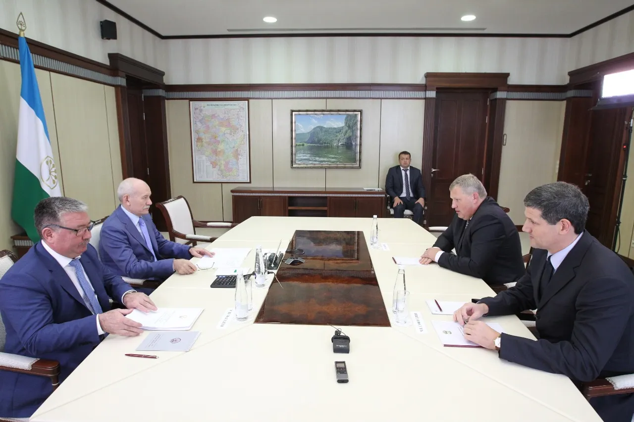UFA, 20 September 2016. /Bashinform News Agency, Alexander Smirnov/. On September 20, the Head of Bashkortostan Rustem Khamitov met with Chief of Volga Customs Directorate Sergei Rybkin at the House of the Republic. The sides discussed the issues of improving customs procedures, including implementation of international investment projects.