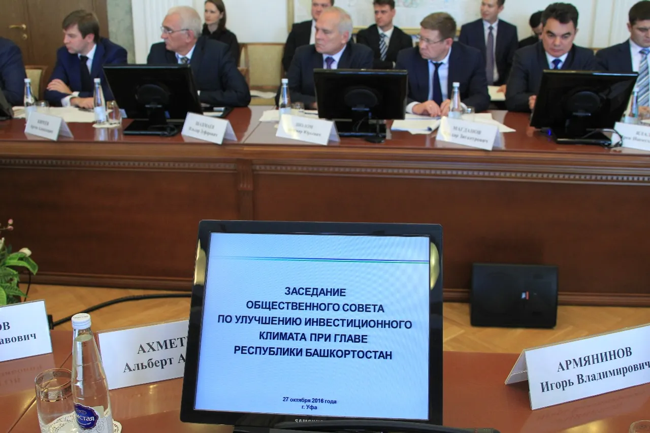UFA, 28 October 2016. /Bashinform News Agency, Alexander Smirnov/. On October 27, a meeting of the Public Council on Investment Climate Improvement under the Head of Bashkortostan was held by the Head of the Region Rustem Khamitov. Investment activity results of the republic in the first half of 2016 were summed up with identifying priorities in this direction.