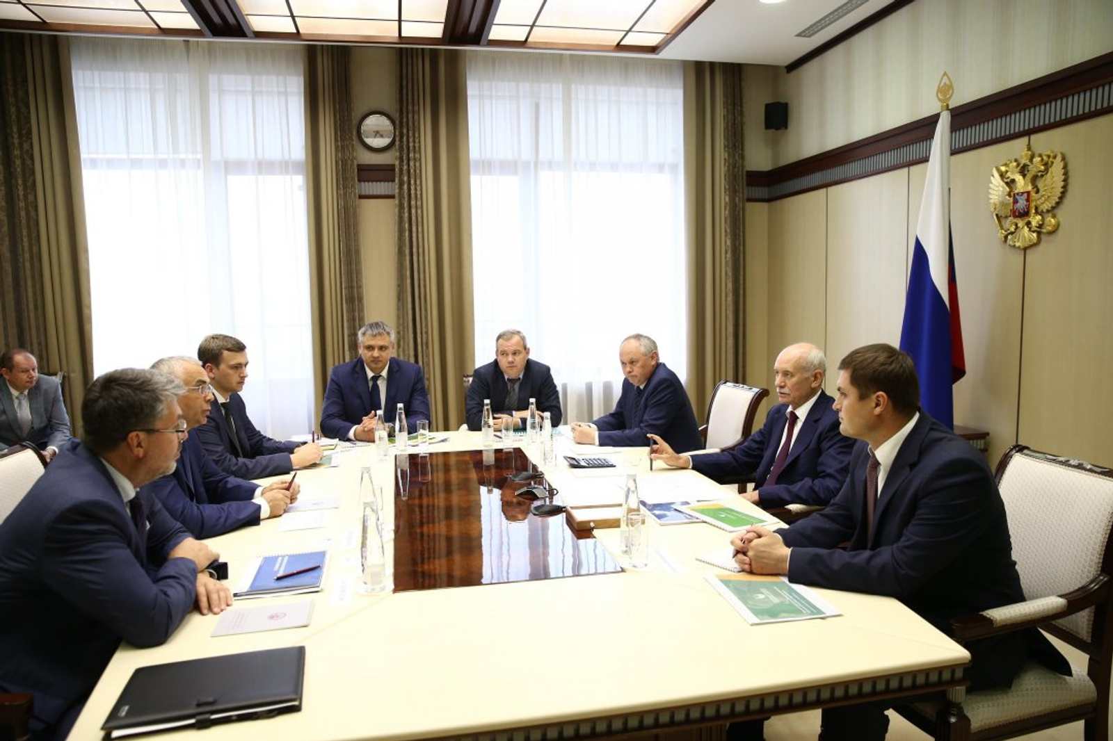 UFA, 20 September 2017. /Bashinform News Agency/. The Head of Bashkortostan Rustem Khamitov met with the Chairman of the Board of Directors of the JVP holding company Victor Pichugov. The meeting as also attended by the Deputy Prime Minister of the Government RB Irek Mukhametdinov, Minister of Agriculture RB Ilshat Fazrakhmanov, President of the Chamber of Commerce and Industry RB Azat Fazlyev, General Director of "Russian Grain Ufa" LLC Maxim Stepnov.
