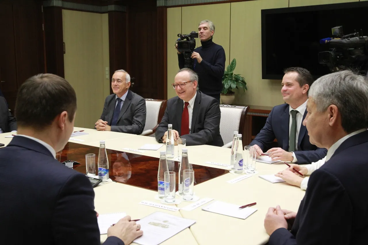 UFA, 25 October 2017. /Bashinform News Agency/. The Head of Bashkortostan Rustem Khamitov met with Alex Bongrain, the Savencia (France) group of companies CEO. During the meeting, prospects for the Belebeevsky Dairy Plant development and expansion of its products range were discussed, including a possibility of organizing soft cheeses production.