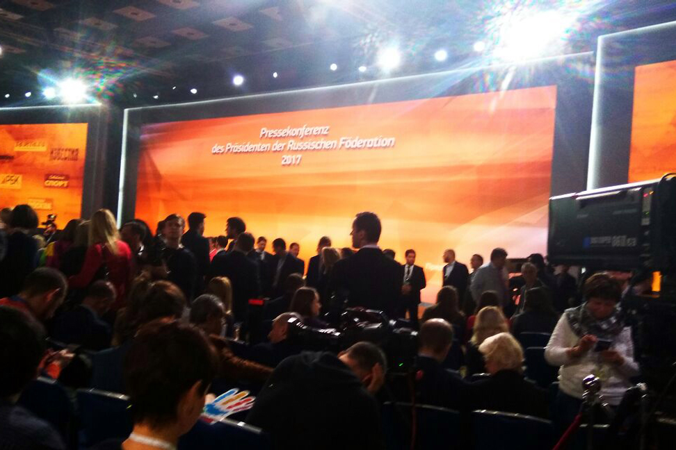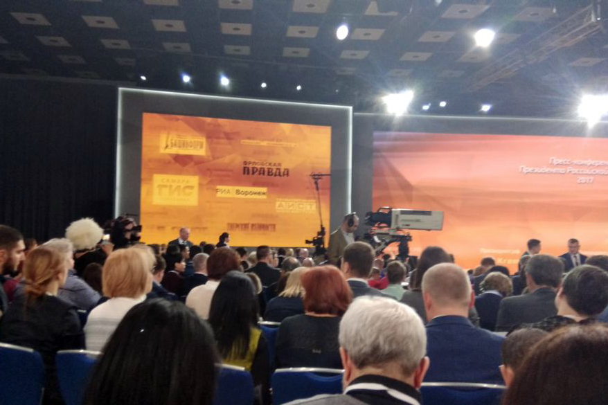 UFA, 15 December 2017. /Bashinform News Agency, Natalia Ovcharuk/. The representative of the Ufa newspaper " Obshchestvennaya Elektronnaya Gazeta " Stanislav Shakhov managed to ask the head of state Vladimir Putin a question at the 13th annual press conference.