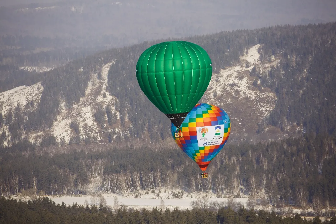 The flight began from the tourist center of Tengri in the village of Kaga Beloretsky district and then went over the most beautiful mountain places of the Southern Urals. The most notable of these is the Great Kraka Ridge, 6 km in length, 4.5 km in width and 1008 m in height. The maximum height reached by the balloons was 2.3 km and the maximum speed made 30 km/h. The trip was completed close to the resort of Yakty-Kul (Bannoye) near the village of Salavatovo.