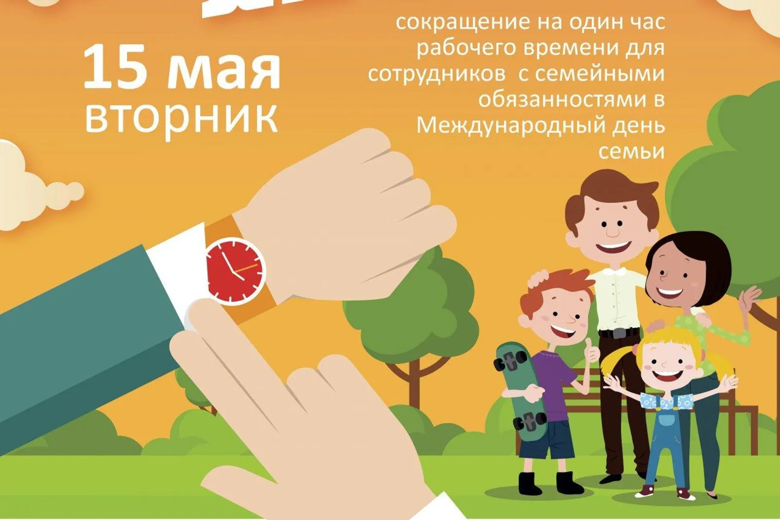 The decision to ask employers to reduce the working day for one hour on May 15 was taken as part of the action plan implementation for the Year of the Family in Bashkortostan, as well as to create favorable conditions aimed at supporting the family, preserving and developing family traditions.