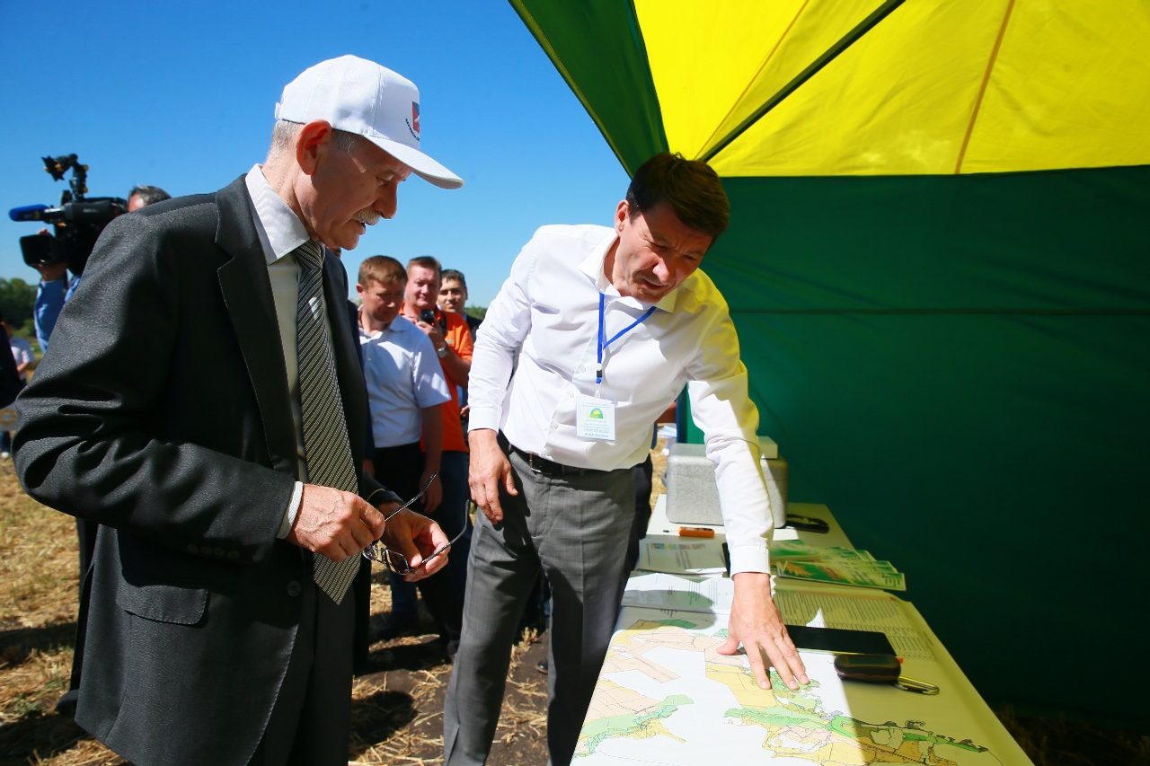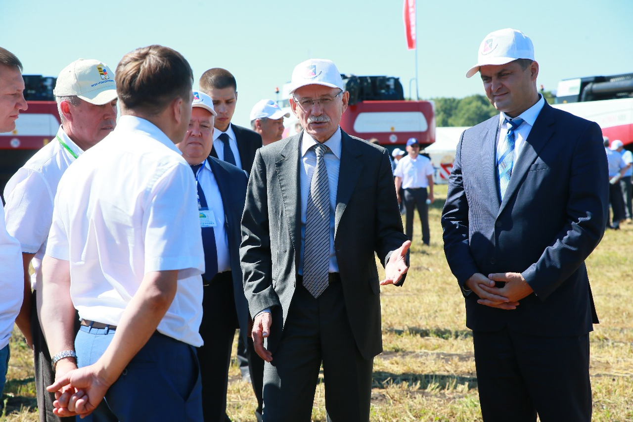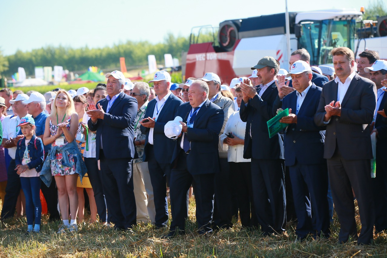Rustem Khamitov examined demonstration crops of maize, sunflower, cereals and other crops. In particular, issues related to growing corn for grain and its "behavior" in the soil and climatic conditions of the republic, the peculiarities of sunflower hybrids and sale of grain crops seeds were discussed. After inspecting the experimental plots, Rustem Khamitov gave a symbolic start to harvesting.