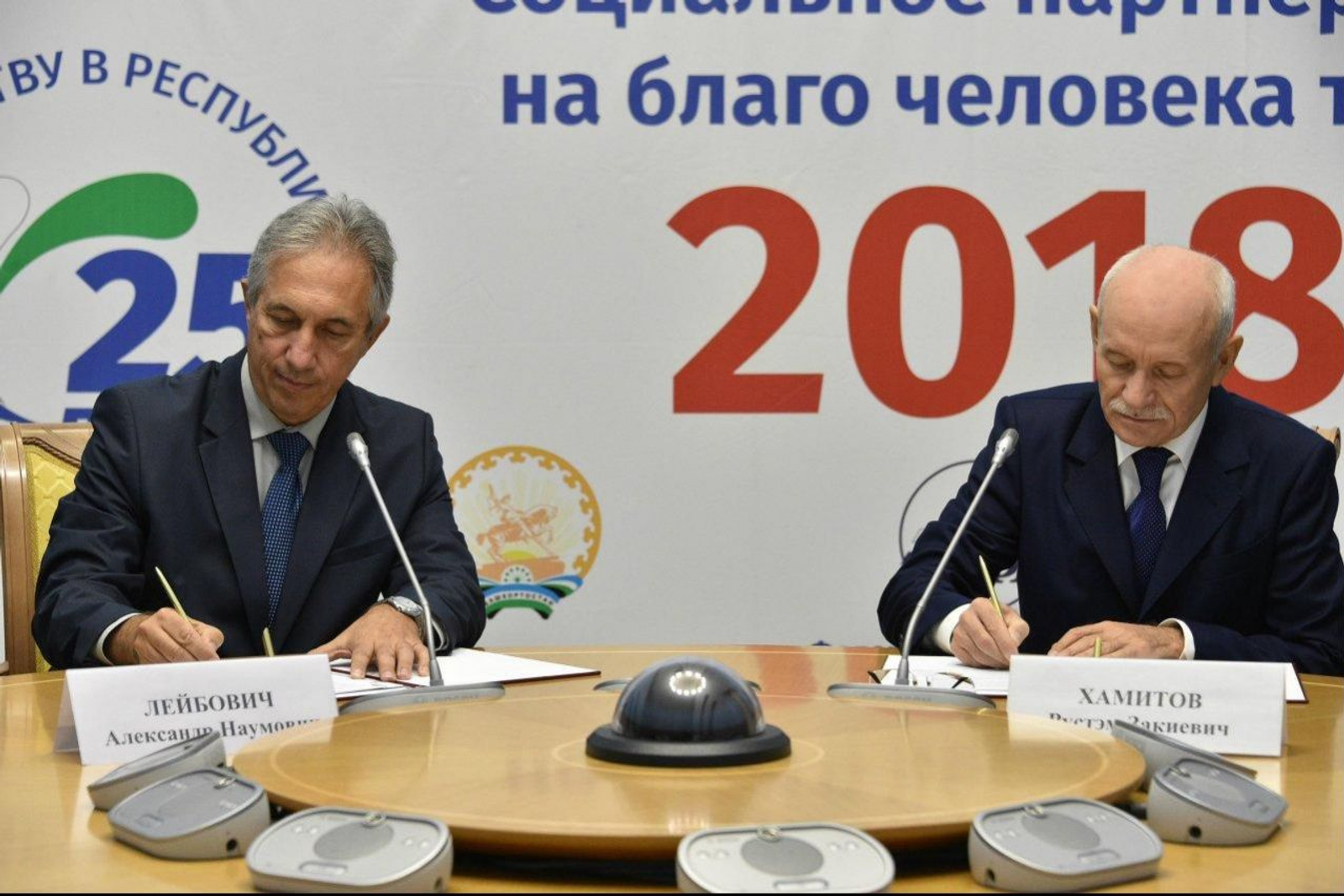 UFA, 14 September 2018. /Bashinform News Agency/ translated by Tatiana Aksyutina/. Yesterday, within the framework of the meeting of the Republican Tripartite Commission for Regulation of Social and Labor Relations, an agreement was signed between the Government of Bashkortostan and the National Agency for Qualifications Development. It was related to the cooperation in the field of the national qualifications system development. The document was signed by the Head of Bashkortostan Rustem Khamitov and the agency's general director Alexander Leibovich.