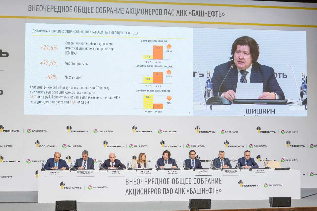 UFA, 17 December 2018. /Bashinform News Agency, Gulfiya Akulova/ translated by Tatiana Aksyutina/. On Friday, an extraordinary general meeting of shareholders of PSJOC Bashneft was held in Ufa. At the extraordinary general meeting of shareholders, the oil company re-elected the board of directors and summed up the preliminary results of the year.