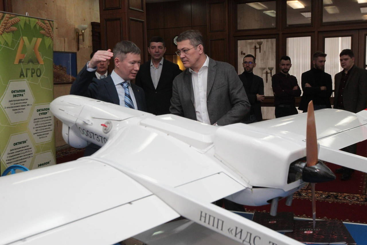 The unmanned aerial vehicle IDS-5 was created by the Blagoveshchensk company "VARK" for monitoring extended objects. It can fly 20 hours autonomously up to 1000 km and lift up to 8 kg of load. The drone was presented yesterday at a small exhibition on the sixth floor of the House of the Republic. The exhibition was visited by the Acting Head of Bashkortostan, Radiy Khabirov. At the exhibition, other scientific and technological developments of the republican businessmen were presented.