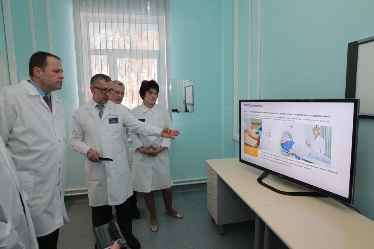 The Plenipotentiary Envoy of the President of Russia to the Volga Federal District Igor Komarov during his working trip, accompanied by the chief of staff of the head of Bashkiria, Alexander Sidyakin, and the chief federal inspector, Mikhail Zakomaldin, visited the Ufa PET Technology Nuclear Medical Center. The medical director of the center Pavel Golovin told the guests that the hospital was opened in May 2014. The volume of investments amounted to about 1 billion rubles. The main activity is cancer diagnosing using the PET method and treatment of tumors by the Cyber-Knife radio-surgical system.