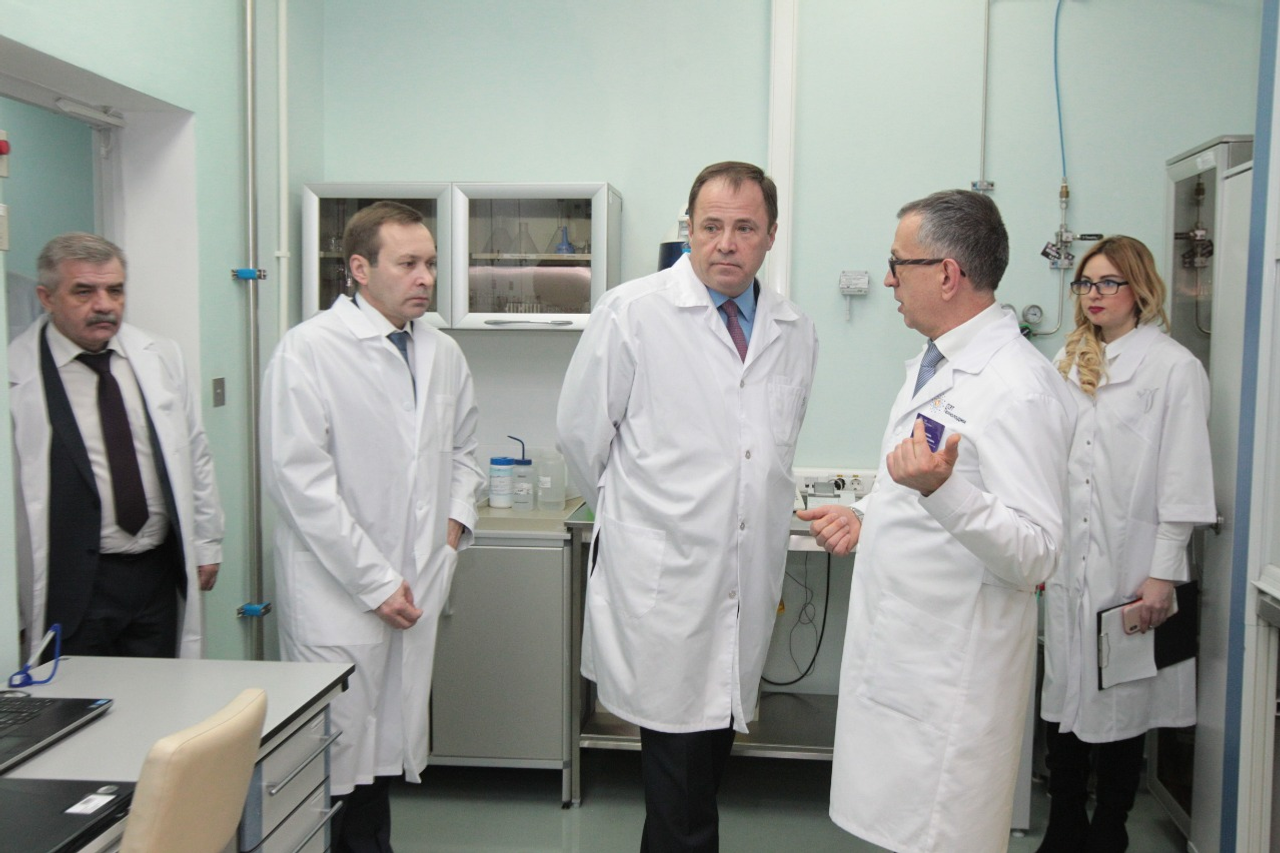 Igor Komarov got acquainted with the work of the cyclotron-radiochemical complex site, the guests were shown the PET scanner and Cyber-Knife operation. The center of nuclear medicine today has a unique system for production, quality control and delivery of radiopharmaceuticals for Russia. They allow diagnosing tumors of the breast, lung, prostate, melanoma. The production center in Ufa daily produces up to 70 doses of drugs.
