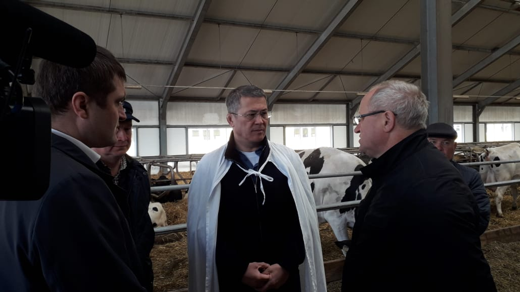 The agricultural enterprise "Artemida" of the Karmaskaly district, in addition to crop production, is actively developing animal husbandry. In 2006, a modern dairy complex for 1250 cows was built here. During his working visit, Radiy Khabirov visited its smart farm. Currently, the number of cattle is 2,711 heads, including cows - 1260. The company has the status of a breeding farm. The productivity of breeding cows was 7177 kg in 2018. According to the management of the farm, it is planned to increase the milk yield to 10 thousand kg.