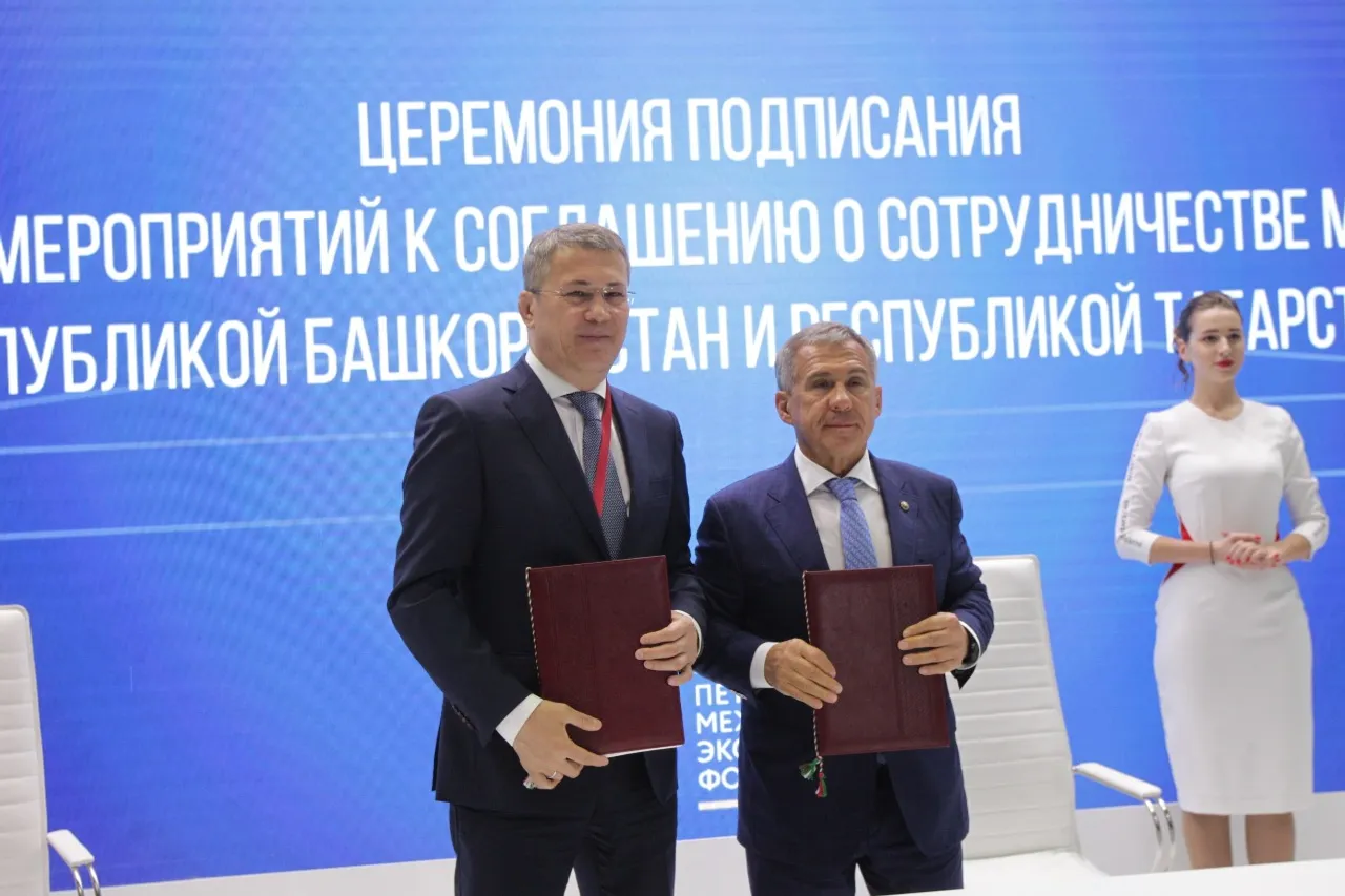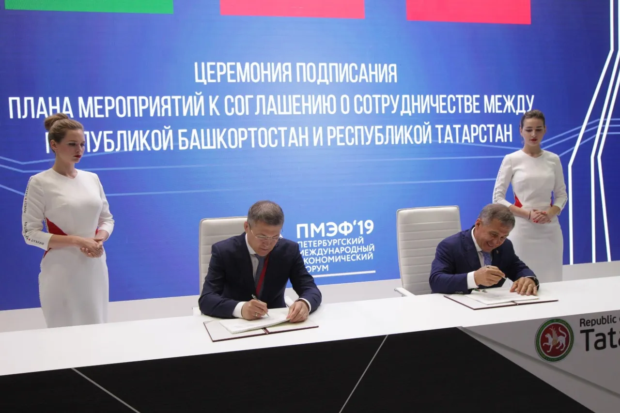 The first document in a row was the signing of an Action Plan for the implementation of an agreement between the Governments of Bashkortostan and Tatarstan on trade, economic, scientific, technical and cultural cooperation for the years 2019-2022. The documents were signed by the Acting Head of Bashkortostan Radiy Khabirov and the President of Tatarstan Rustam Minnikhanov.