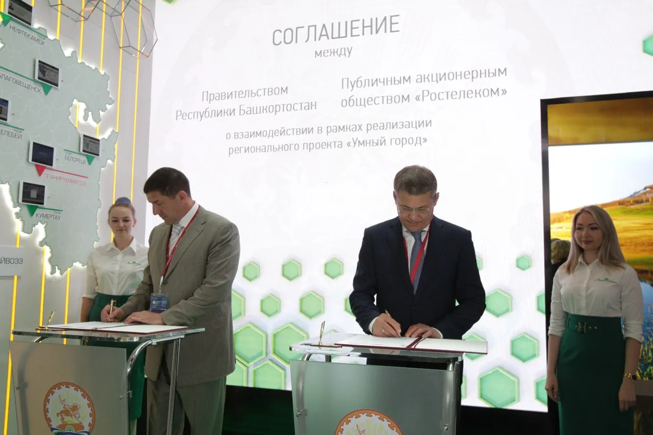 The next document signed at SPIEF-2019 was an agreement between Bashkortostan and PJSC Rostelecom on cooperation as part of the Smart City project. The document was signed by the Head of the region, Radiy Khabirov, and the president of the company, Mikhail Oseevsky.