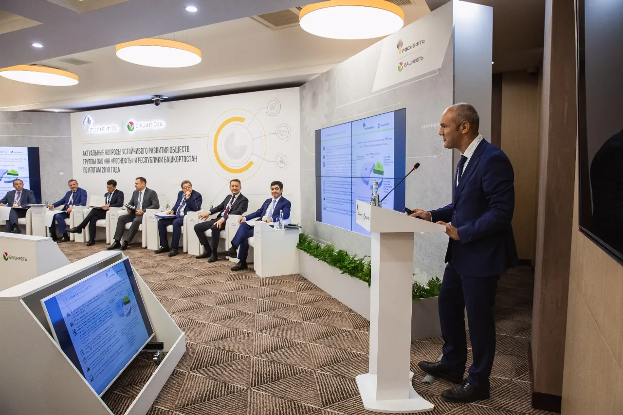 The conference room "Narys-Tau" of the "Bashkiria" hotel complex hosted a round table discussion "Topical issues of sustainable development of PJSC Rosneft group and the Republic of Bashkortostan following 2018". Representatives of state and municipal authorities, business, science, public organizations met with the top management of PJSOC Bashneft (part of Rosneft), to discuss the results of financial, economic and production activities of the company, the results of cooperation on social partnerships and several other topics.