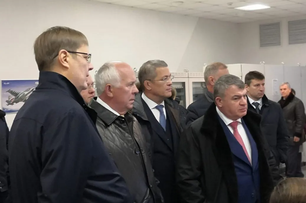 In the test shop, the Rostec head, Sergei Chemezov, and the Head of Bashkortostan saw how the aircraft engines are tested.