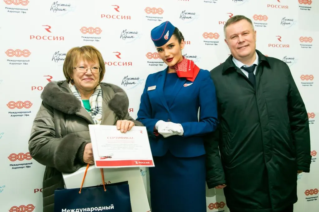 Rossiya Airlines presented a 3.5-millionth passenger with a certificate for a free flight on the route Ufa - St. Petersburg - Ufa. Also, as a gift from the Ufa airport, the anniversary passenger was awarded a certificate for free parking, souvenirs, and a business lounge service certificate.