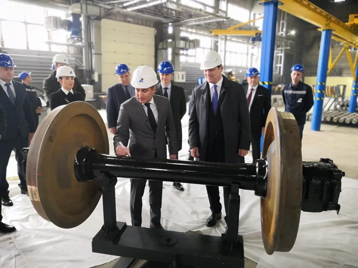 Radiy Khabirov, together with the company's management, took part in the launch of the wheel pair forming machine and put his signature on the first finished products of the enterprise. It is planned to produce 1,600 wheels monthly here.