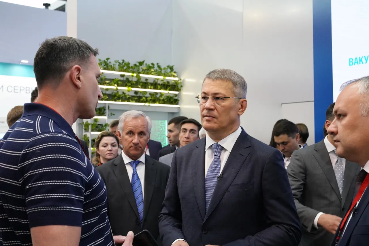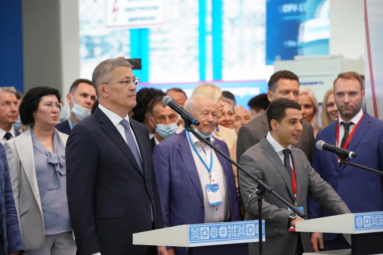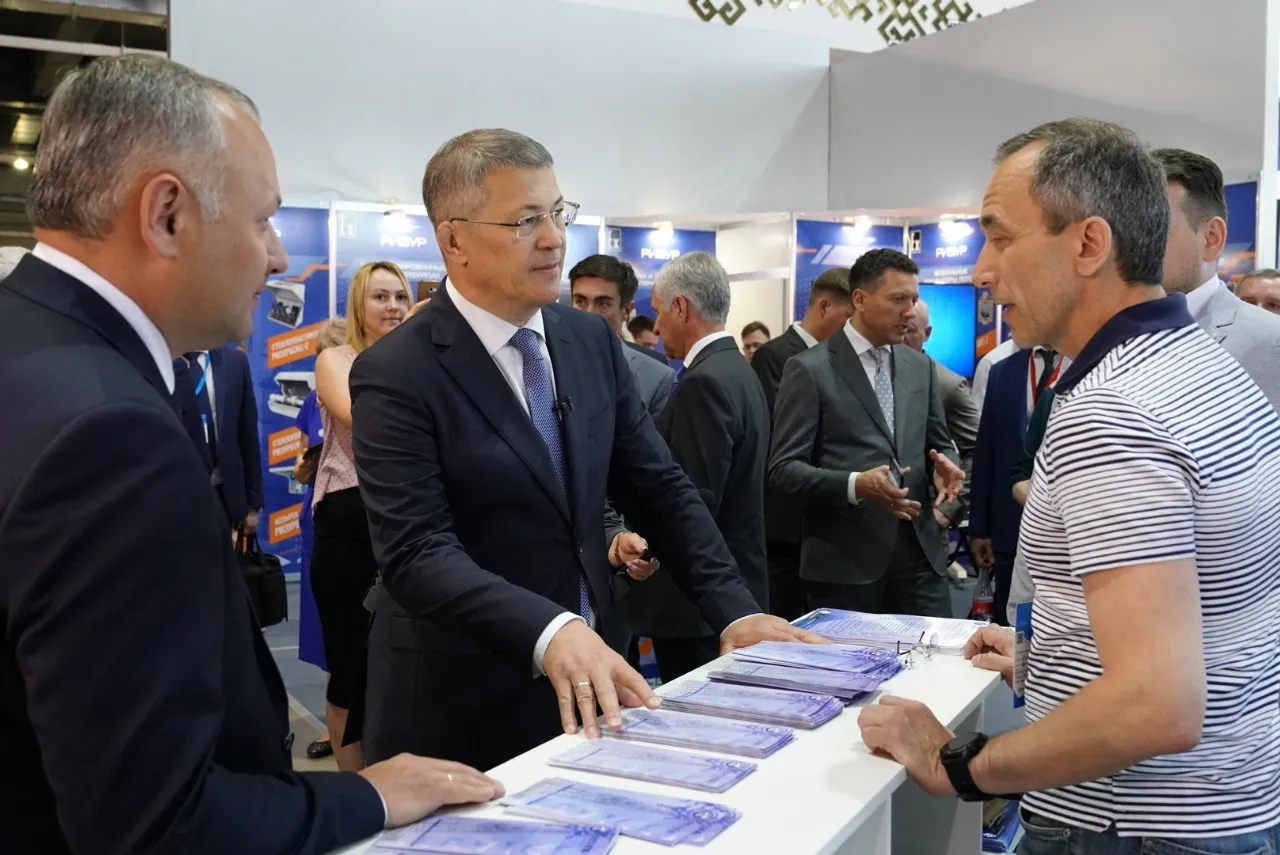 After the opening ceremony, the Head of the Republic visited the expositions of Bashneft, Transneft-Ural, Gazprom Transgaz Ufa, Bashkir Soda Company, Gazprom neftekhim Salavat, Bashneftegeofizika.