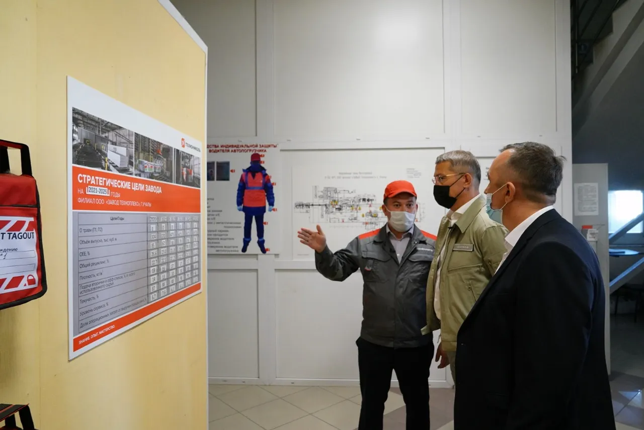 In Uchaly, the Head of Bashkortostan, Radiy Khabirov, visited the branch of the Technoplex plant, which produces heat-insulating materials and extruded polystyrene foam.