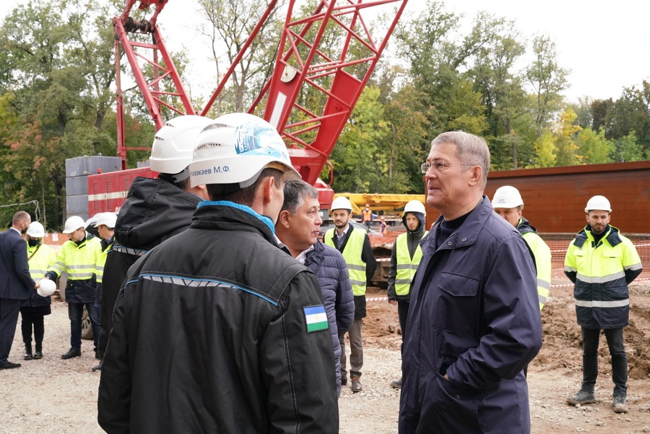 Radiy Khabirov also examined the progress of bridge construction across the Ufa River. According to the chief engineer of Limakmarashavtodorogi Aleksey Khavilov, the readiness of the bridge crossing is 25%. In total, it will be necessary to erect six supports and mount about six thousand tons of steel structures of the span across the Ufa River.