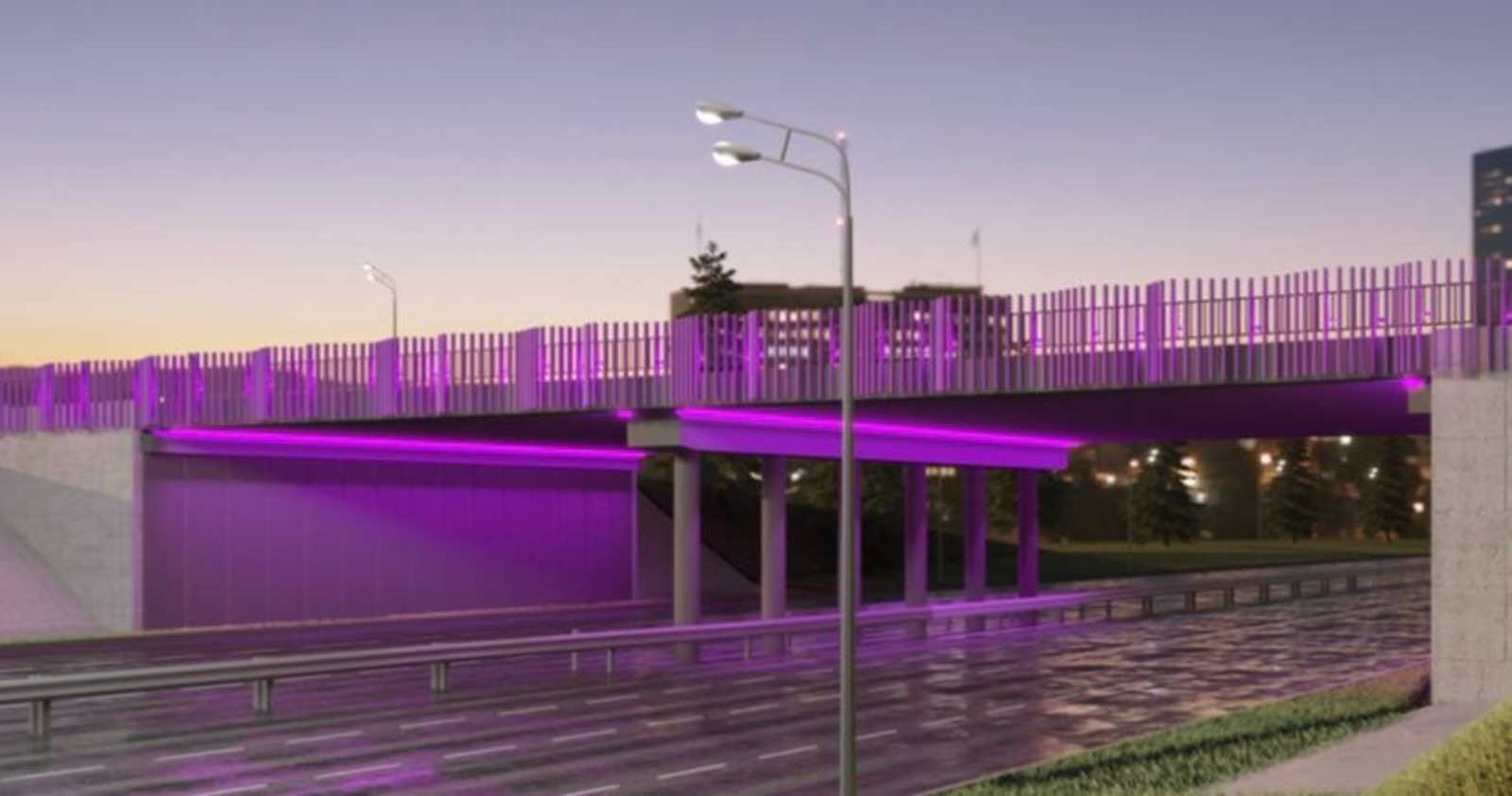 According to the contract documentation, the contractor is to install 1,680 LED and 189 linear luminaires with red, blue, green, and white LEDs on the overpass. The work must be completed by December 25, and a three-year warranty is provided.