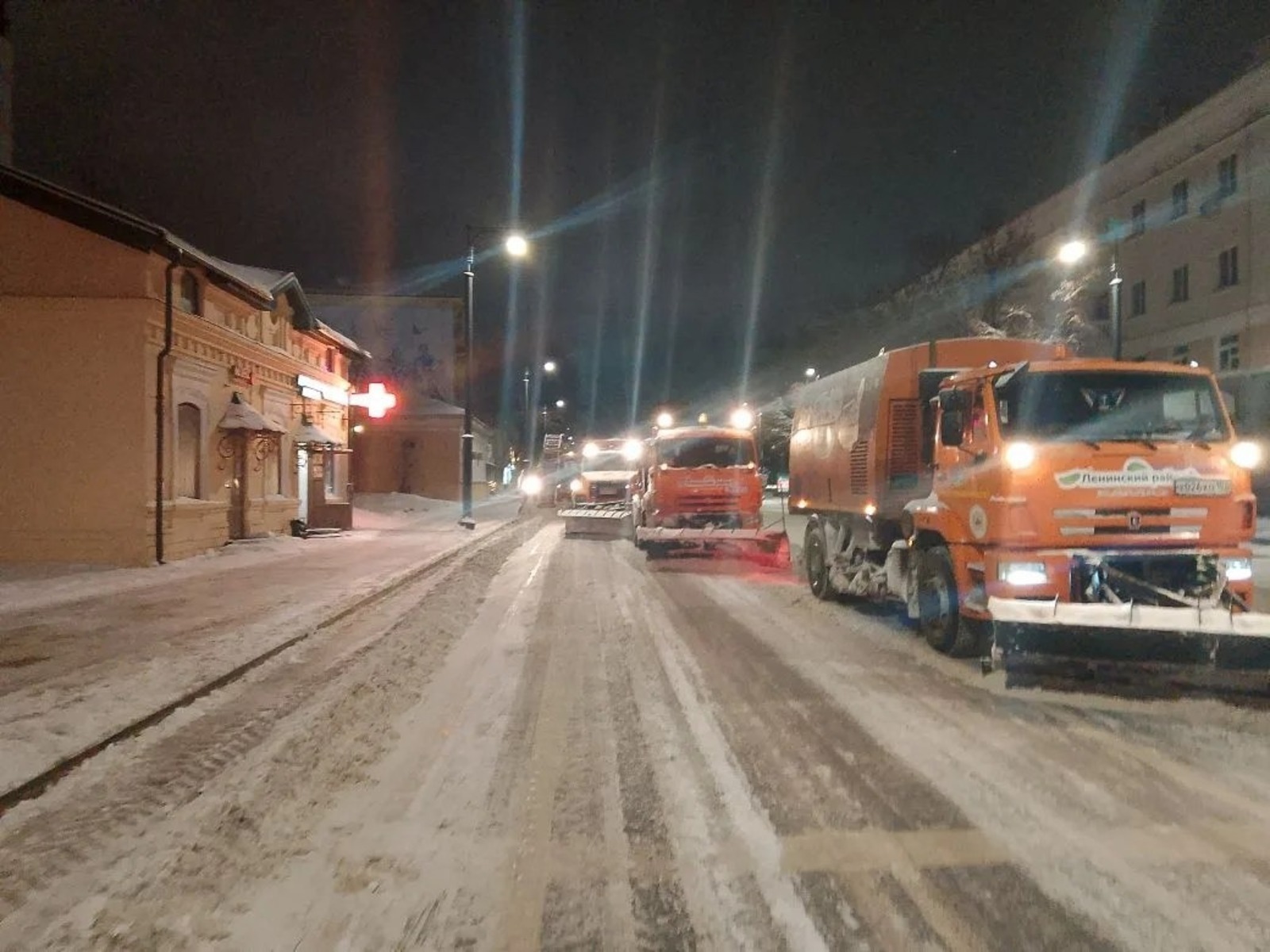 Ufa municipal workers continue to deal with the aftermath of Sunday's snowfall. Road clearing continued overnight—for example, 600 tons of snow were removed from Pushkin, Kirov, and Lenin streets and transported to a landfill.