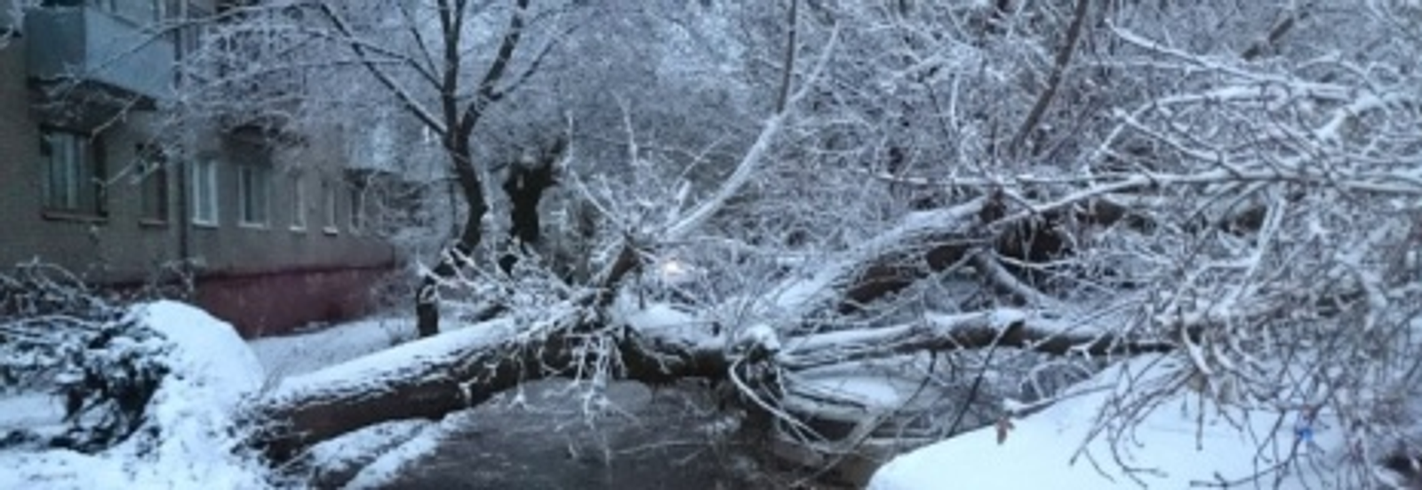 UFA, 30 October 2015. /Bashinform News Agency, Olga Murtazina/. On Thursday evening, due to wet snow and strong winds trees fell in Ufa. Two cases of property damage were recorded, 112 Rescue Service reported.