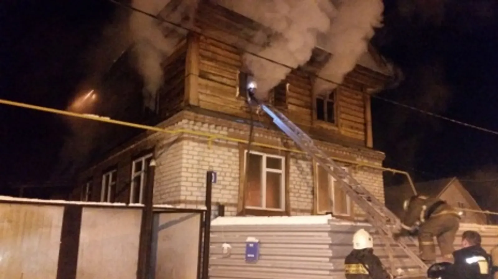 UFA, 18 December 2015. /Bashinform News Agency, Olga Murtazina/. In Ufa, overnight into December 18 a fire broke out in the Nizhegorodka residential district. According to the "Detachment 22 Federal Firefighting Service RB" an entrance and the first floor went on fire in a private house in Bauman Street. There was a woman with two minor children in the house. They could not leave the burning premises independently. The victims were evacuated through the window of the second floor. 24 emergency officers and nine equipment units worked at fire extinguishing. Presumably, the fire occurred due to improper use of gas heating system.