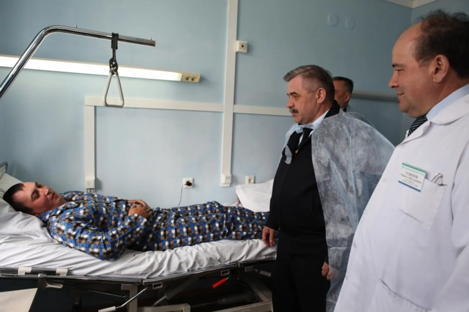 UFA, 13 May 2016. /Bashinform News Agency, Arthur Basyrov/. The Minister of Internal Affairs RB Michael Zakomaldin met with police officers injured in an explosion in Chechnya. According to the press service of the department, the night before Ilnar Islamov from Neftekamsk and Radik Bikmurzin from Dyurtyuly region together with the doctors of the medical unit of the Ministry arrived in Ufa. They will be treated at the Republican Clinical Hospital.