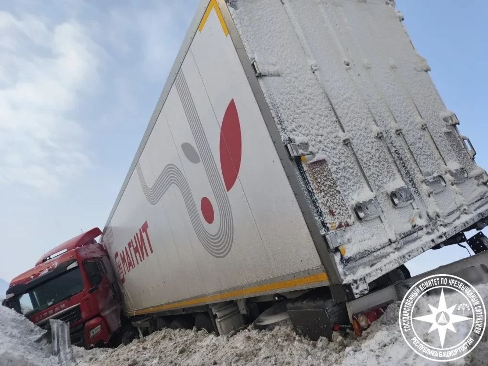 According to the State Committee of the Republic of Bashkortostan for Emergency Situations, a truck overturned on the M-12 highway at kilometer 1212, near the village of Nizhneatashyevo in the Dyurtyulinsky District. Rescue workers promptly arrived at the scene and freed the driver.