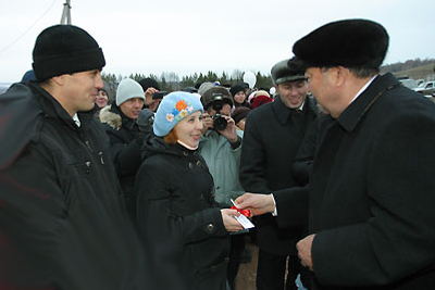 President of Bashkortostan Murtaza Rakhimov took part in the ceremony. The head of our region pointed to the symbolicalness of the fact that 19 young families received new cottages during the Youth Year in Russia and the Year for support and development of youth initiatives in Bashkortostan. House-building actively runs not just in Tuimazinsky region but all over the Republic and about two and a half million square meters of dwelling will be erected in 2009. Bashkortostan holds the fifth place in the country by the volumes of house-building and Republican leadership considers this branch the strategic priority of social-economic policy.