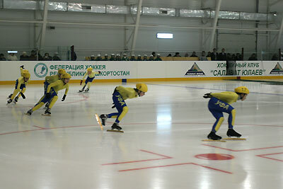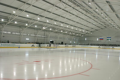 The common square of the skating ring is 3500 square meters with the standard hockey ground 30x60m. The sport center is erected specially for the citizens of the northern part of the city and now they can go in for sports all the year round.