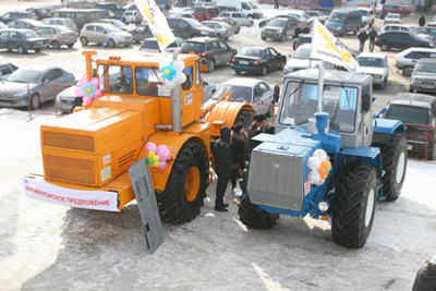First the specialists have demonstrated the best models of the agrarian machinery to the President RB: harvesters, seeding-machines, reaping-machines, mowers and feed cars, located in the open air.
