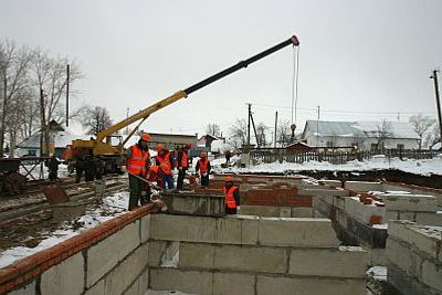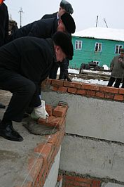 The new house is meant for the people, left homeless because of the fire accident, having occurred on the night of March 8, 2010.In the course of the fire extinguishing the firemen have evacuated 36 people, including six kids. Five people reported dead and other five were sent to the local hospitals with numerous burns. The house can’t be repaired –by the arrival of the fire brigade the wooden two-storied barrack was fully enveloped in flames. The leadership of the Republic has taken the problem with housing for the burnt down people upon itself. The means were allocated from the Republican budget. The builders promise to put the new house into exploitation by May. At present time the house’s foundation is ready. The President RB has become acquainted with the house’s project and laid the symbolical first brick on its foundation.