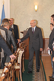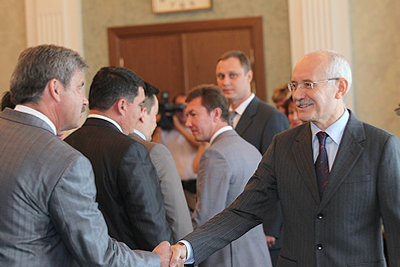 The President of Republic of Bashkortostan Rustem Khamitov held the first meeting of a new Government today. Entering the hall the head of the Republic shook hands with every of newly appointed Vice-Premiers, Ministers and heads of the state committees and departments.