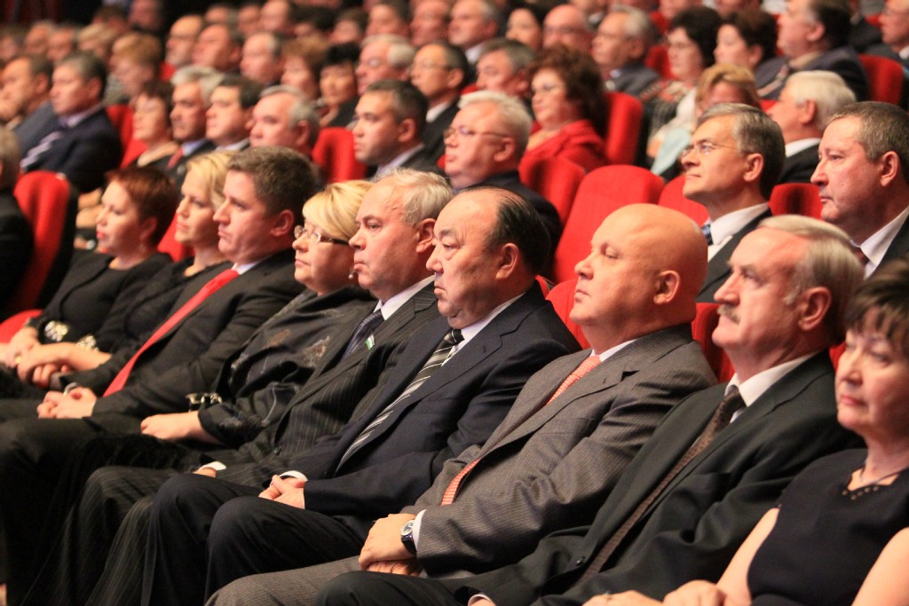 Solemn meeting, devoted to the Republic Day, has taken place on October 11 in Ufa, the Culture Palace “NEFTYANIK”, with participation of the President of Bashkortostan Rustem Khamitov, the chairman of the State Council-Kurultay-RB Constantine Tolkatchev, the deputy Prime-Minister of the Government RB Zugura Rakhmatullina, representatives of the deputy’s corps, ministries and departments RB, political parties, public and religious communities, veterans.