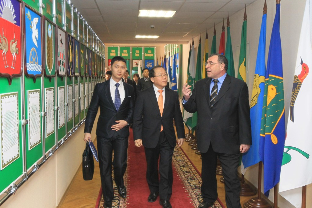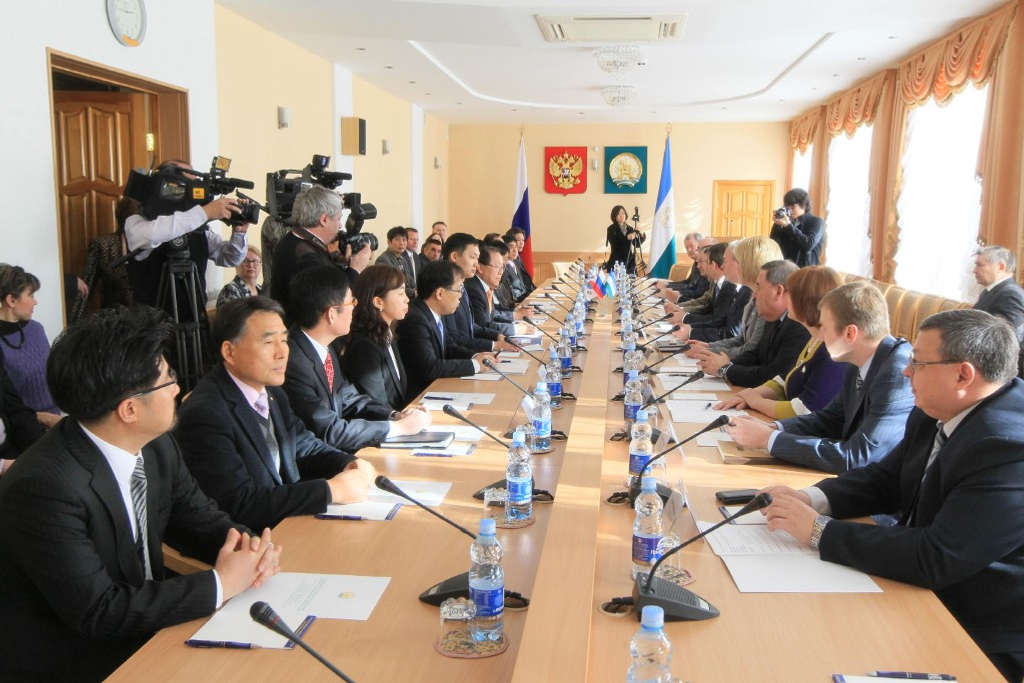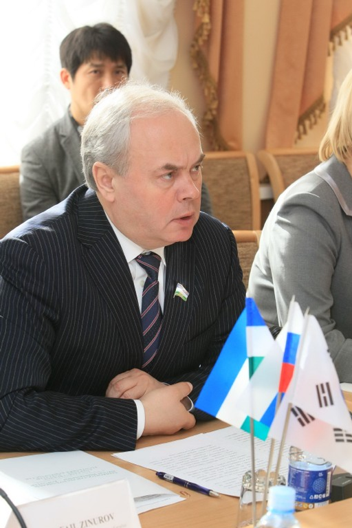 The chairman of the State Council-Kurultay-RB Constantine Tolkatchev, his deputies Rafael Zinurov and Lilia Gumerova and representatives of the parliamentary committees have held a meeting with the governmental delegation of Republic of Korea, guided by the head of the medium and small business agency under the Government of Korea Kim Dong Sun, in Ufa on March 28.