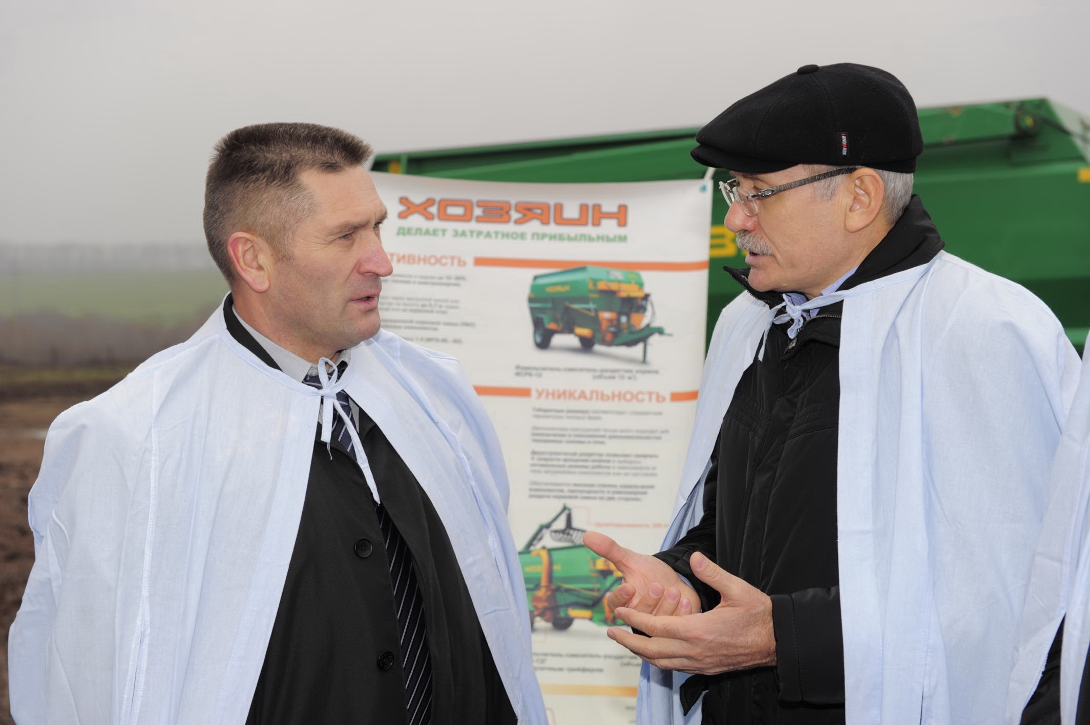 Rustem Khamitov has discussed further business plans with the leadership of the farm. According to the farm's director in 2011 they received rather substantial backing from the Government RB: the subsidies for equipment and fuel purchase. The fuel was acquired at lower prices.